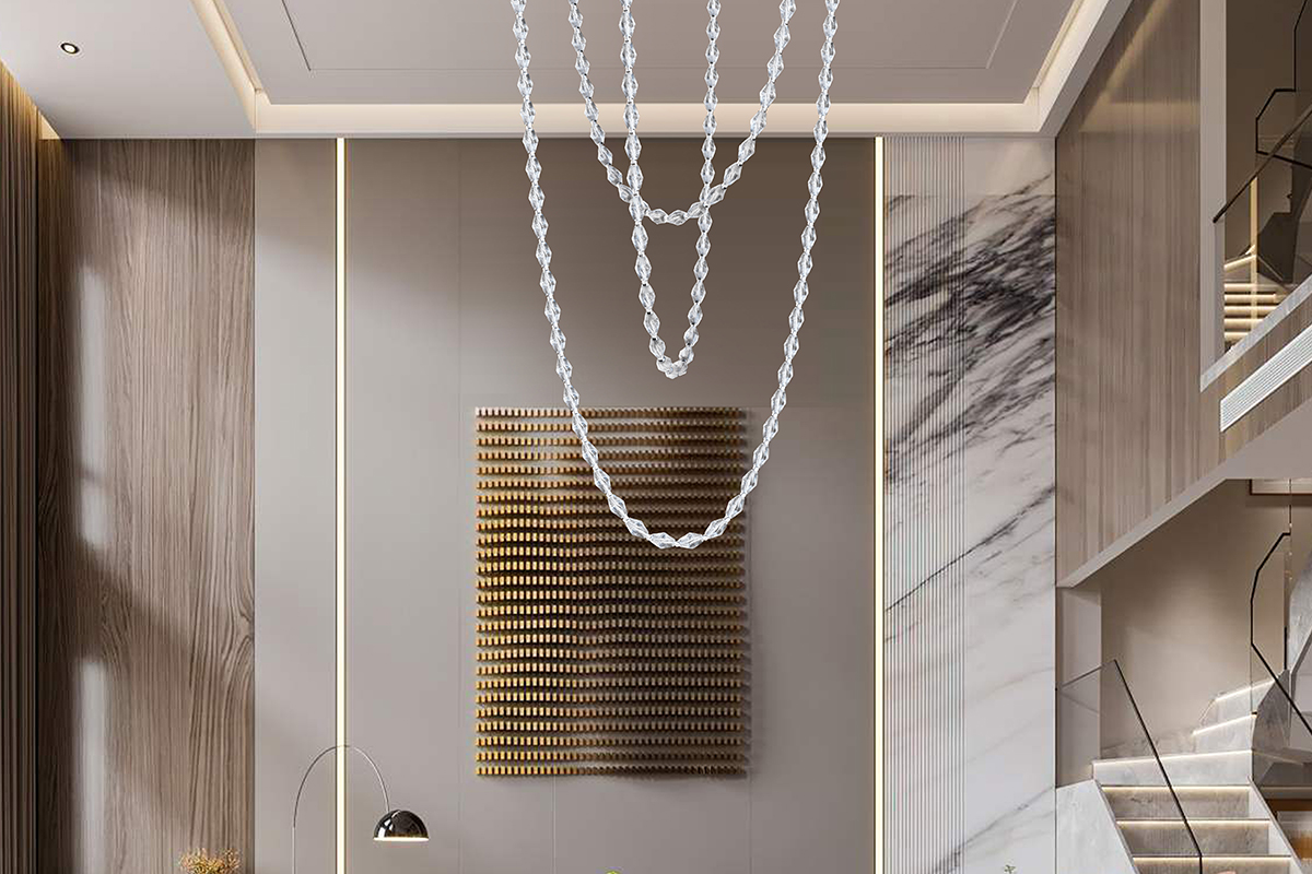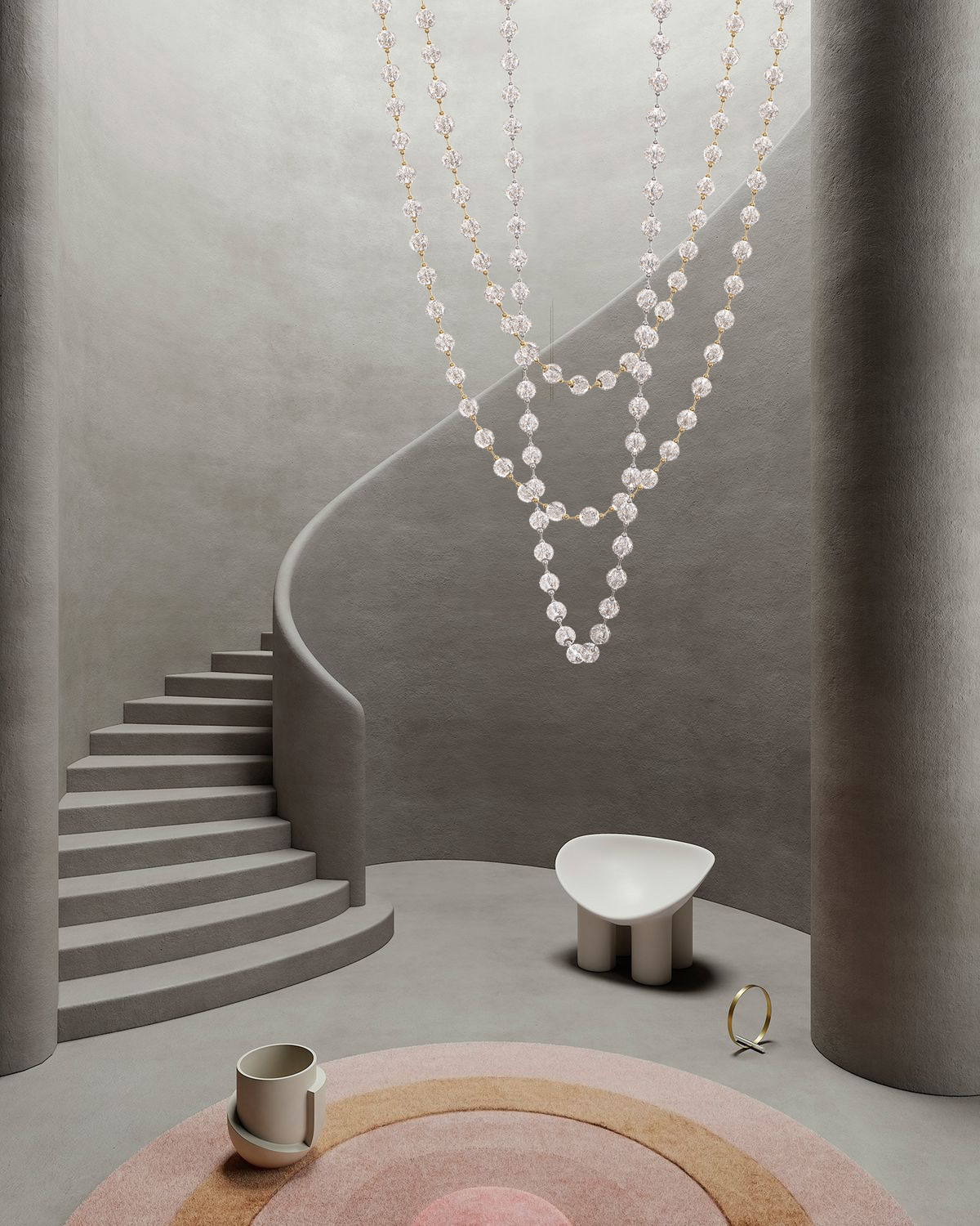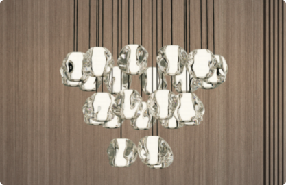 Inspired by the refractive brilliance of diamonds, the exquisite crafted texture and optical acrylic cast multidimensional lighting effects. Designed to transform any space into a luminous installation of sculptural beauty.