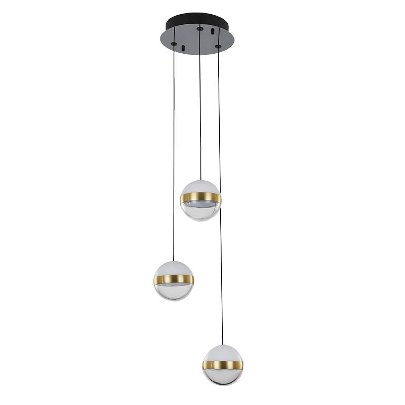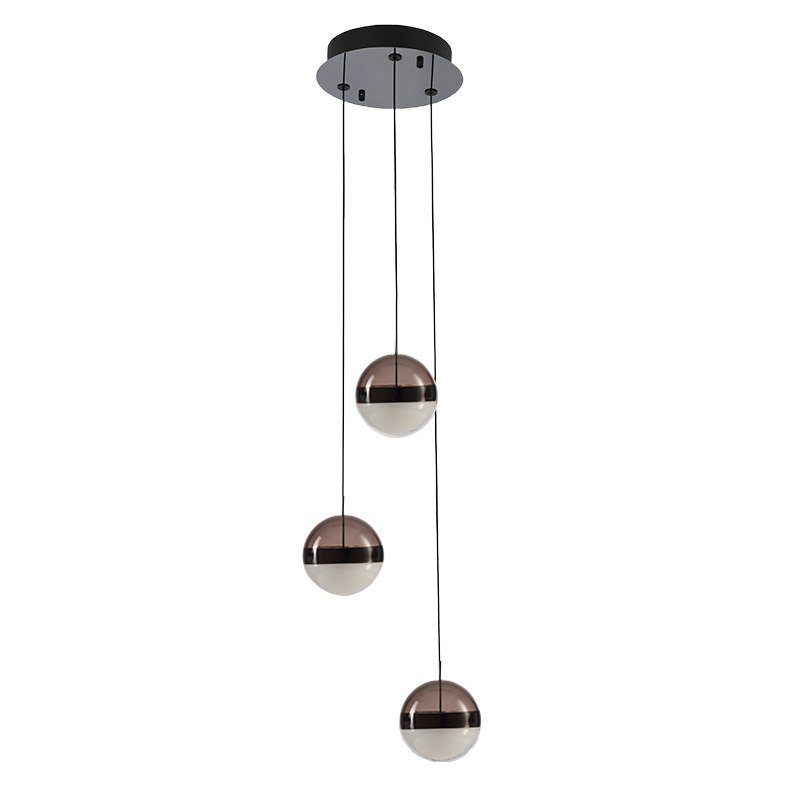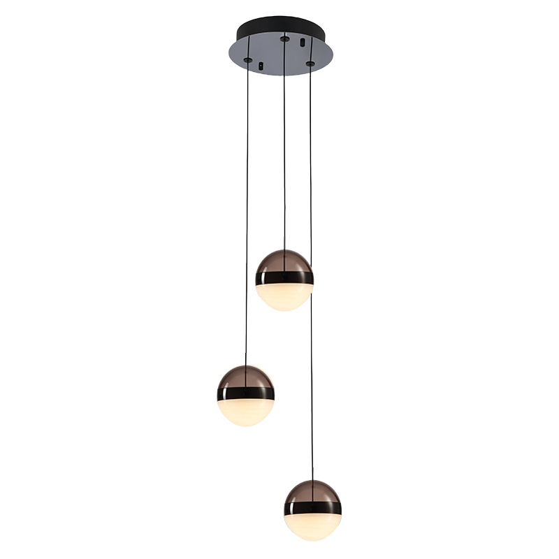 Bringing elegance and warmth to any interior, the Atomo II three-light ceiling fixture draws inspiration from the timeless spherical form. Each of the three pendant heads features a crystal-clear acrylic outer shell paired with a milky white inner diffuser, casting a soft, ambient glow that adds romance and tranquility to bedrooms, living rooms, or any cozy setting. With a clean, symmetrical design anchored by a round ceiling plate, the fixture blends modern aesthetics with functional versatility. Each globe has a diameter of 12 cm, and the suspension height is fully adjustable, allowing for personalized arrangement to suit different room heights and styling preferences.