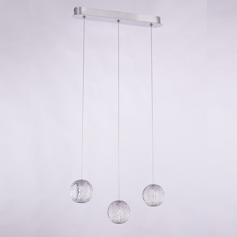 This 3-light rectangular canopy pendant lamp radiates a soft and inviting glow, perfect for creating a warm and cozy atmosphere in bedrooms, over dining tables, or along bar counters. Each crystal-clear spherical lampshade features a delicately textured surface, resembling fine-cut crystal—combining aesthetic elegance with practical lighting performance.
